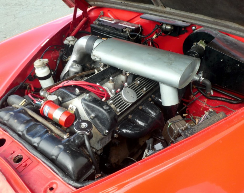 The car has good Pirelli white sidewall tyres and the spare wheel matches – a wire wheel, with white sidewall tyre. The tools and jack are with the car. There’s a small quantity of new parts which will go with the car, as well as the handbook.