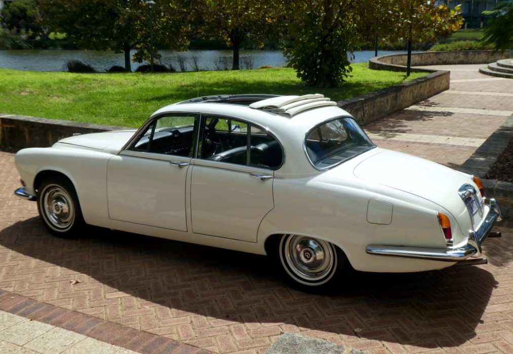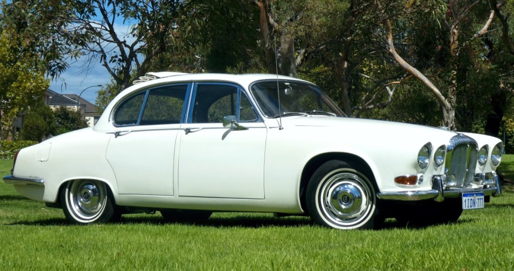 A lovely example of the final model of Compact Jaguar and Daimler series from the last year of production. Fitted with many features which were options on lesser models, this car is a great beauty. It features the 245bhp 4.2 engine, automatic transmission, Marles power steering, full leather trim with perforated seat faces and lots of beautiful wood trim – as well as an excellent full size Webasto sunroof.
