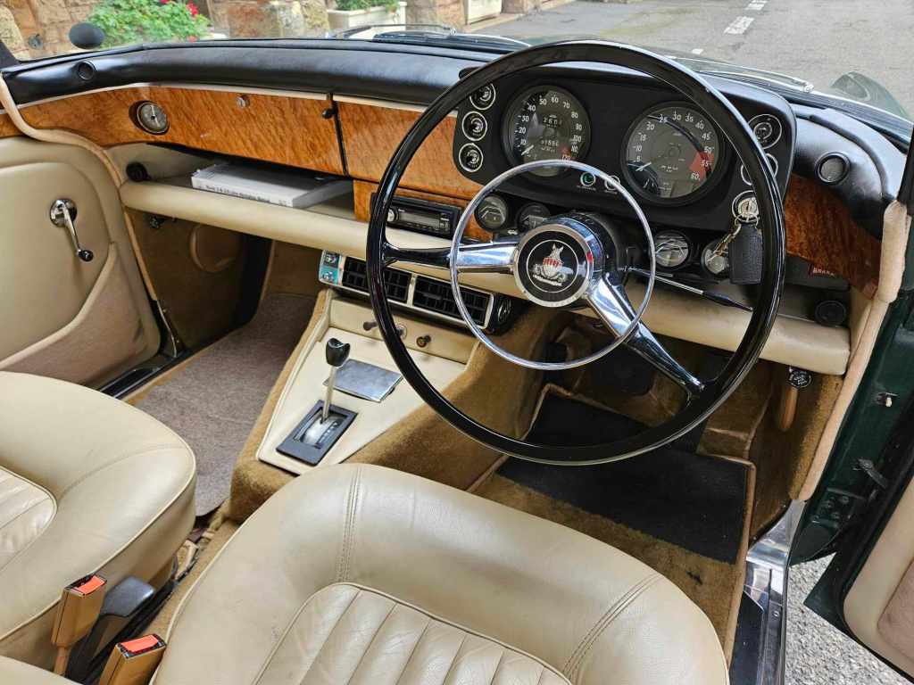 Inside, the car presents very nicely. The leather trim, carpets, polished woodwork and fittings all being in excellent condition. Of particular interest is the burl walnut woodwork in place of the original plain wood finish on the dashboard and door cappings.