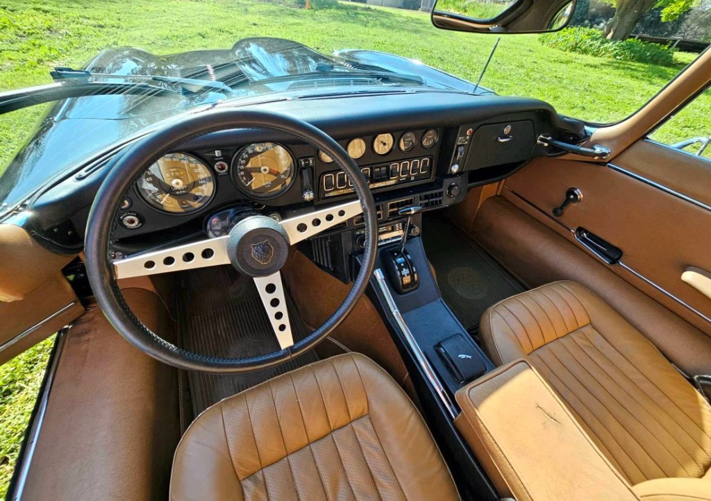 The car is largely original and was repainted a few years ago and the metallic black bodywork presents beautifully. Inside, the leather is in a tan colour which suits the car well.