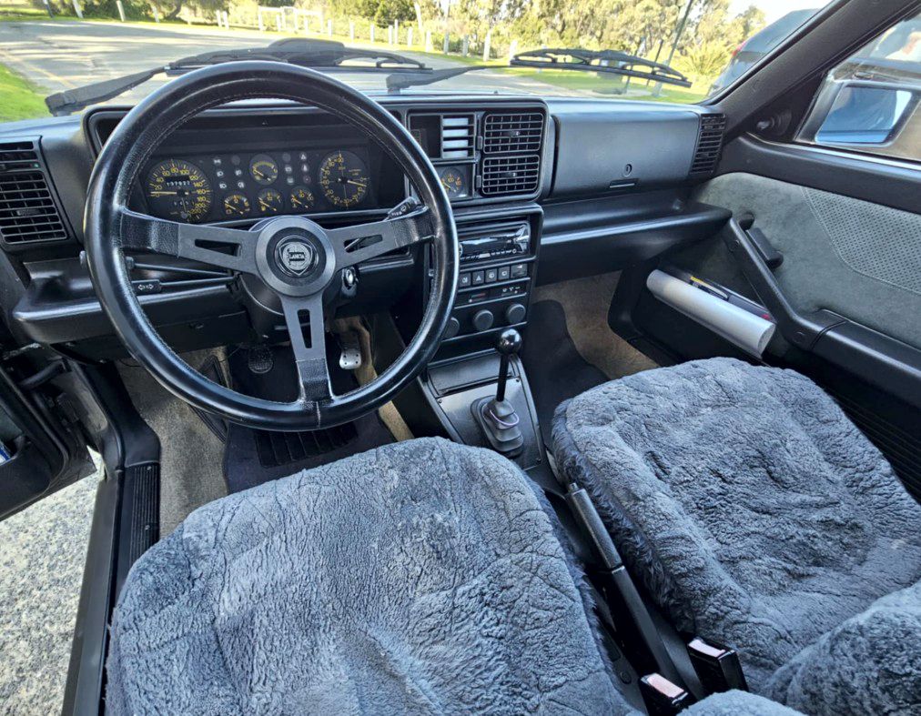 This example is a very early 16-valve version, built in May 1989. This Italian-specification car has the rare green perforated Alcantara seats, door trims and head-lining. Most have the lower-cost rainbow-striped grey cloth interior.