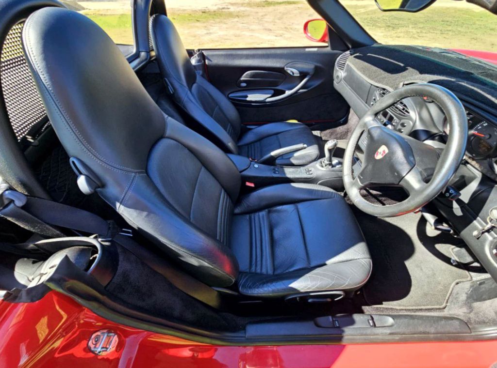 Finished smartly in Guards Red with black trim and soft-top, with optional wheels it makes as striking a car as it would have 23 years ago. The same owner has kept the car all this time, covering 121,000km in it.